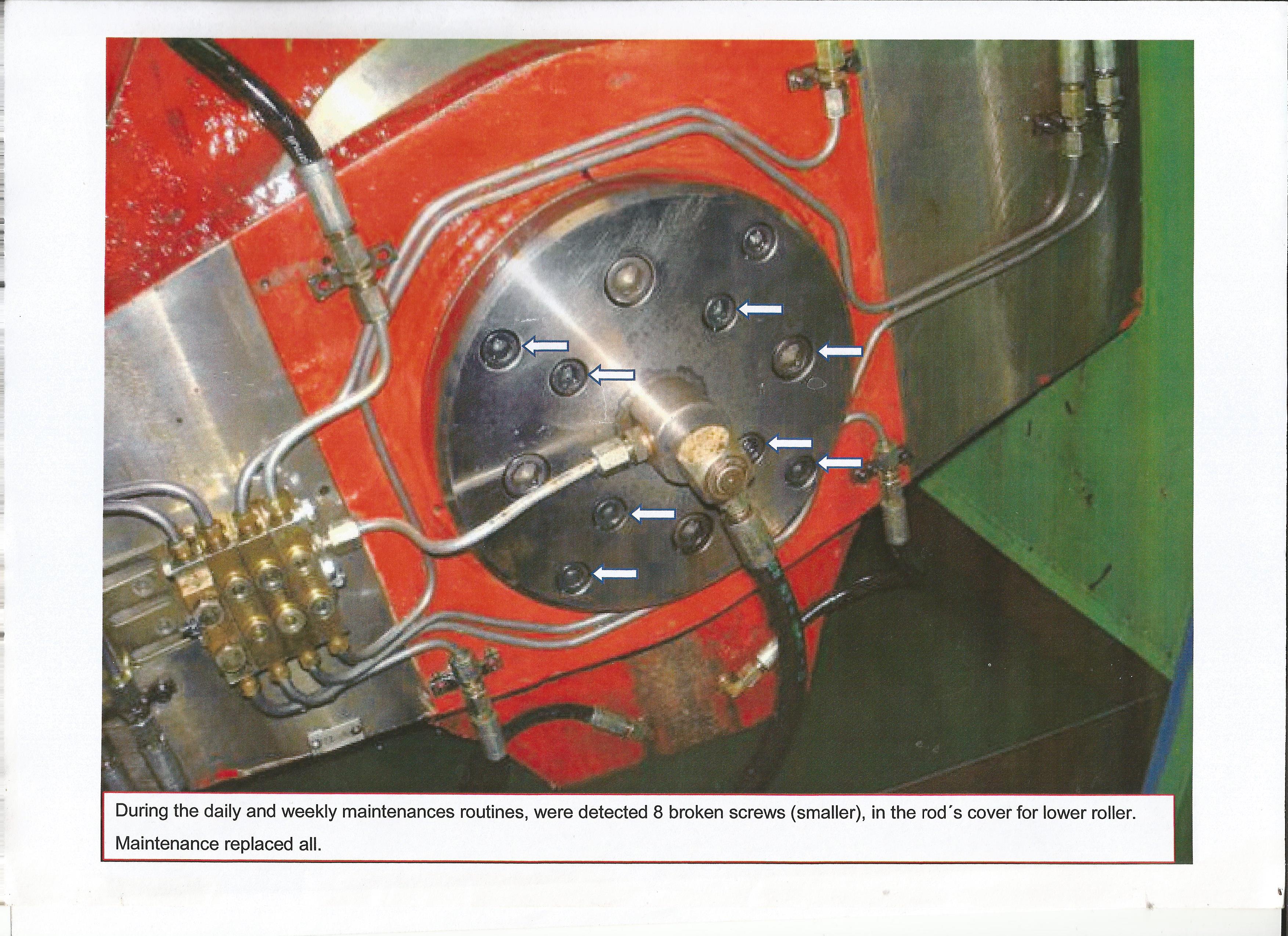 Bei den Gesprächen höre ich so einiges raus und das Puzzle fügt sich langsam zusammen.Vor 2 Wochen ist die Hydraulikzuleitung zur Kupplungs/Bremskombi aufgrund einer Leckage gewechselt worden.Einige Tage später traten die ersten Störungen an der KBKombi auf, woraufhin die Mechaniker vor Ort den Arbeitsdruck der KBK auf 70bar erhöht haben,das alles führte sehr schnell zum Ausfall der Kupplungs/Brems/Kombi.Durch zu hohe Belastungen der Walze sind die Schrauben der unteren Walze abgerissen.Den Druck der KBK auf über 70bar einzustellen hat die Überlastfunktion der Kupplung außer Betrieb gesetzt.Die Mechaniker hatten diese ersetzt und nicht weiter geforscht.Ich begebe mich an die Leitung und suche die vom Hersteller vorgeschriebene Blende in der Zuleitung.Leider ist die Blende bei der letzten Reparatur nicht wieder montiert worden und die Erhöhung des Betriebdruck war auch hier schädlich.So muss es über Druckspitzen zum Schaden in der KBK gekommen sein.Woher nehmen wir jetzt eine passende Aussenlamelle,mitten in Mexiko denke ich noch,da kommt Douglas und sagt ganz locker“In a few minutes we have a solution“. Und wirklich, er hat eine Ersatzaussenlamelle in Auftrag gegeben,der Hersteller sagt zu das Teil in 2 Tagen zu liefern.Eigentlch unmöglich,daheim packe ich solch beschädigte Teile ein und fahre zum Hersteller um die KBK überholen zu lassen.Dort ist alles so geheim das sie nur ihre Teile abgeben dürfen und einen Termin zur Abholung bekommen.Einen Blick in ihre heiligen Hallen ist Fremden nicht gestattet.Nach 2 Tagen bringt mir Douglas um 9.00uhr die neue Aussenlamellen. Wir montieren die Bauteile und es passt , nie hätte ich das erwartet , die Mexikaner haben sich meinen Respekt verdient.Natürlich bauen wir auch eine entsprechende Blende in die Zuleitung und kennzeichnen diese auch deutlich sichtbar an der Maschine und im Plan.Die Mechaniker haben in der Zwischenzeit die Hydraulikanlage gereinigt und gespült.Noch schnell die Zahnräder im Gertriebekasten überprüfen und mit metallcheck eine Rissprüfung machen-alles OK ich habe Glück.Nun können wir mit dem Probelauf starten , Maschine an , Motor läuft ,Schwungrad dreht , Hydraulikdruck ist da , ich drücke beide Knöpfe zur Handbetätigung und die Walzen setzen sich ohne murren in Bewegung-puhhhh.Anruf beim Chief Herbert,“Hallo , hat alles soweit funktioniert und ich denke die Maschine kann so erstmal arbeiten.Am Besten ist wenn der Hersteller bei der nächsten Revision die Vorgelegewelle samt der KBK austauscht.“ Herbert hört mir zu und antwortet “ Wenn du meinst werde ich das so weitergeben.Willst du jetzt noch bis zum 21.12 dort bleiben oder soll ich deinen Flug umbuchen?“